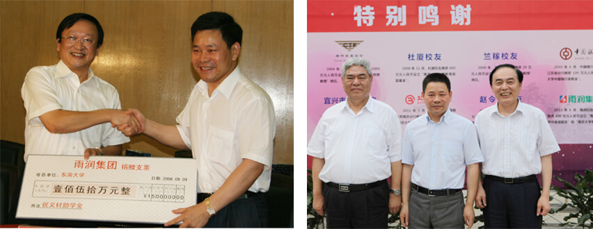 這是雨潤控股集團(tuán)捐贈南京大學(xué)第二個五年計劃的開始。在2008至2012年度,雨潤已經(jīng)完成五年共計150萬元的“祝義財助學(xué)金”的捐贈,前后一共資助了500位家庭貧困的莘莘學(xué)子。為了繼續(xù)支持南京大學(xué)本科教學(xué)改革計劃,今年雨潤控股集團(tuán)又和南京大學(xué)續(xù)簽了捐贈協(xié)議,從2013至2017年五年間共計捐贈400萬元,每年80萬元,用于支持南京大學(xué)的發(fā)展。